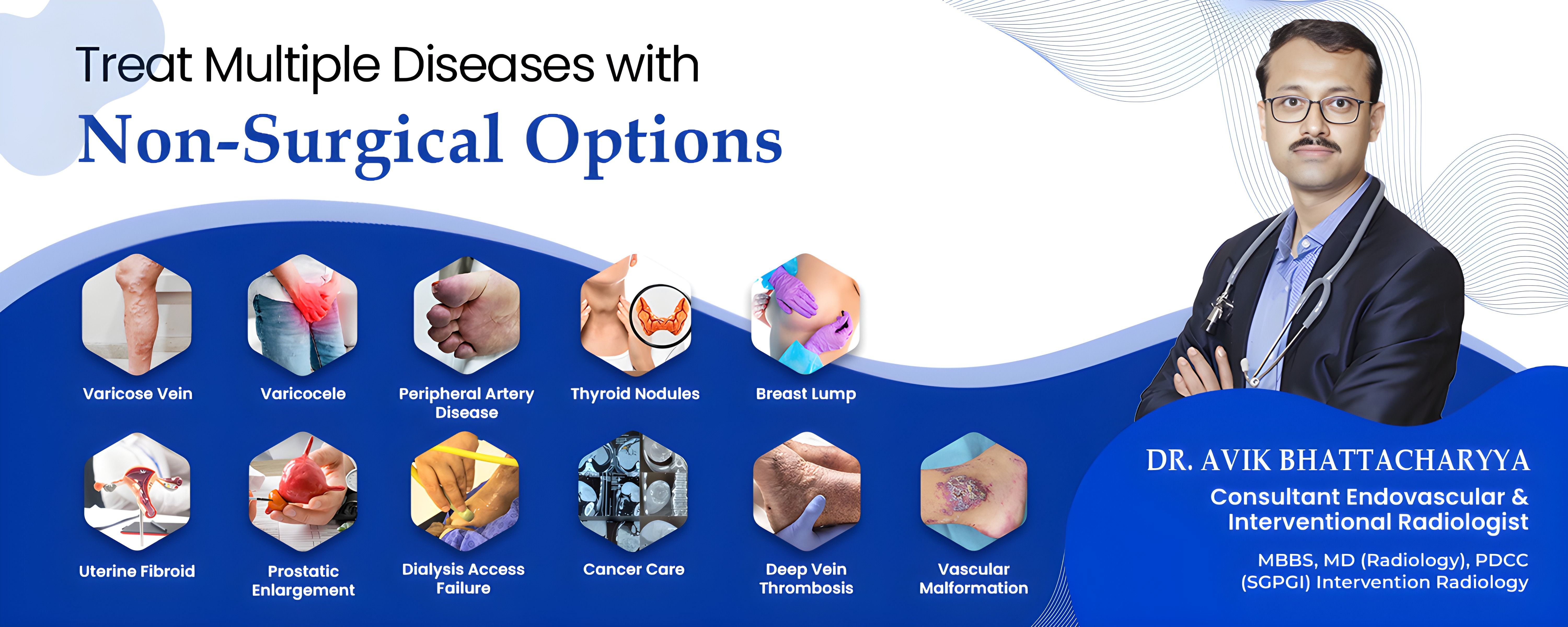 Dr. Avik Bhattacharyya, a leading vein specialist doctor and interventional radiologist in Kolkata, is the Head of the Department of Radiology and Interventions at CK Birla Hospital, The Calcutta Medical Research Institute & BM Birla Heart Research Centre, Kolkata. With 18+ years of experience, formerly he served as a Professor in Radiology at The Ramkrishna Mission Seva Pratisthan & Vivekananda Institute of Medical Sciences, Kolkata and an Assistant Professor at the School of Digestive and Liver Diseases, Institute of Post Graduate Medical Education and Research, Kolkata, India.
